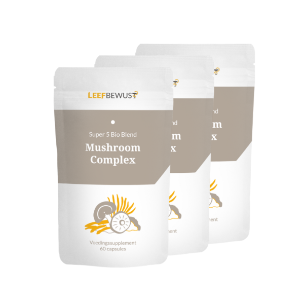 Mushroom Complex: Chaga, Cordyceps, Shiitake, Reishi en Maitake.